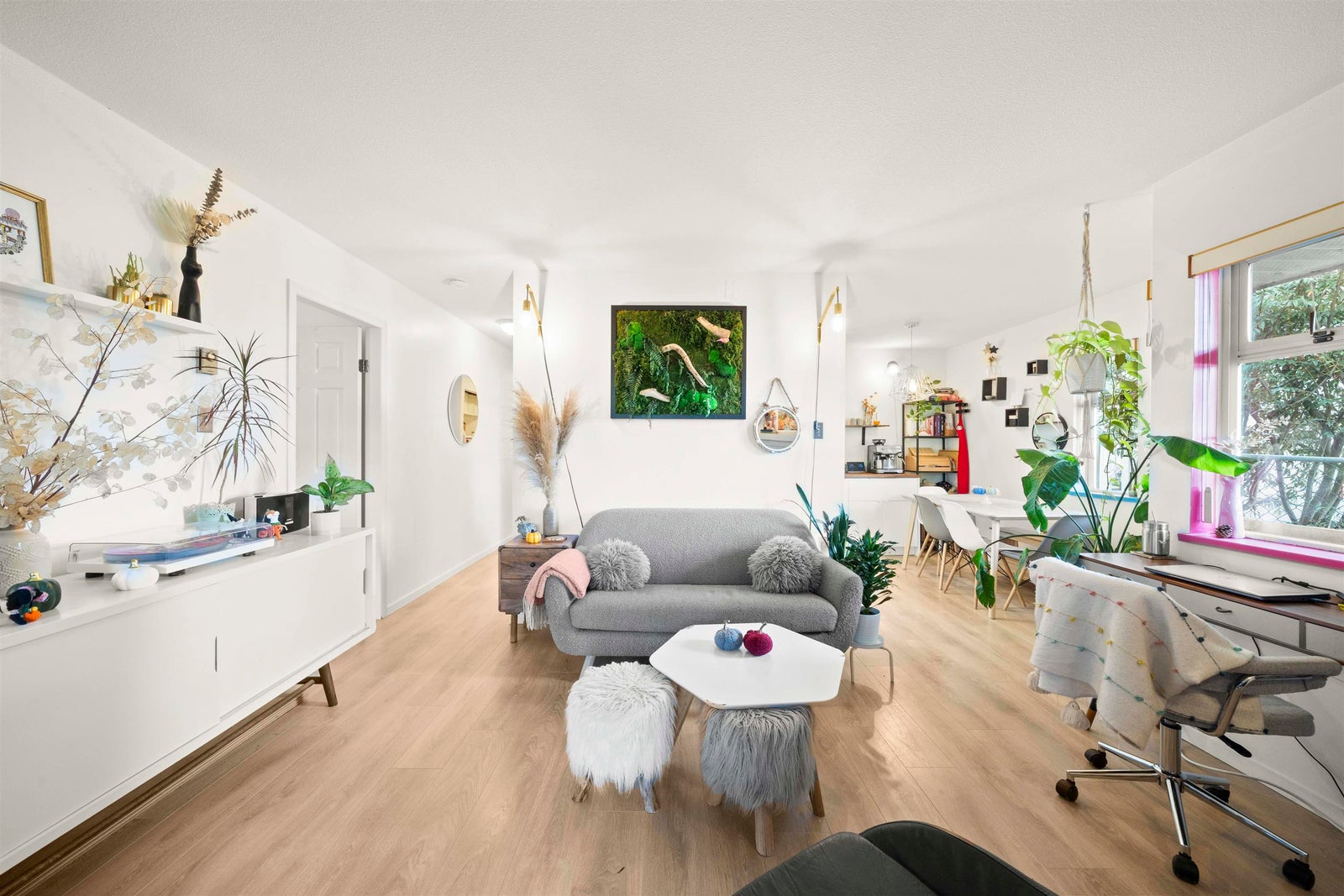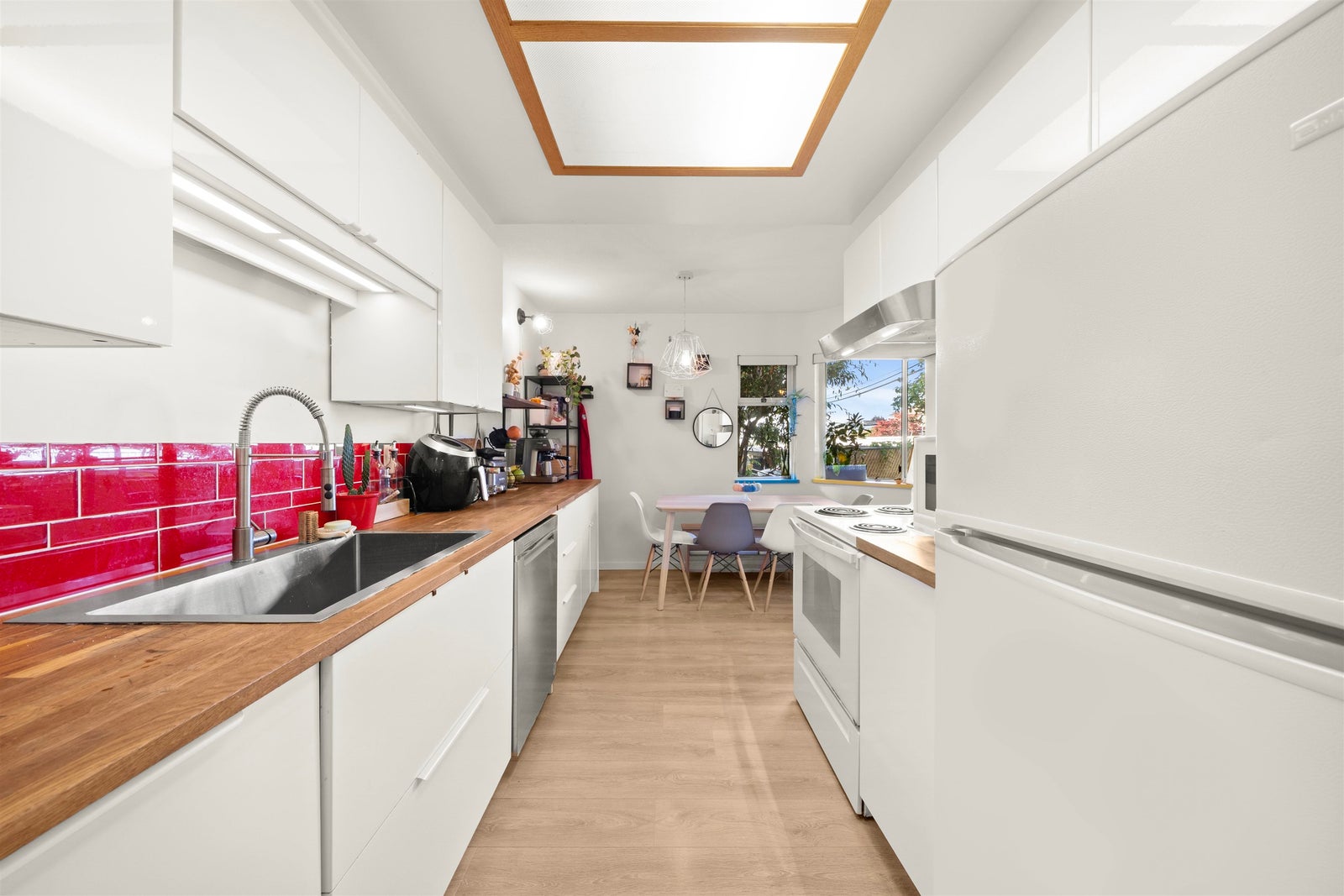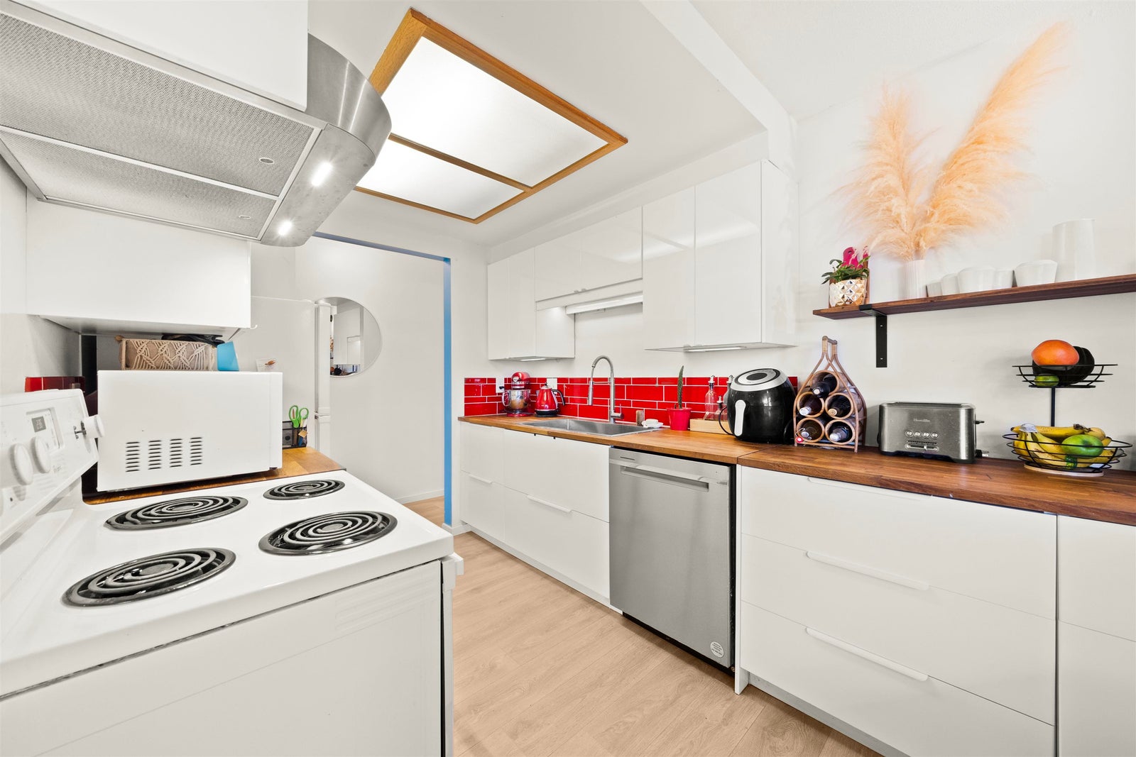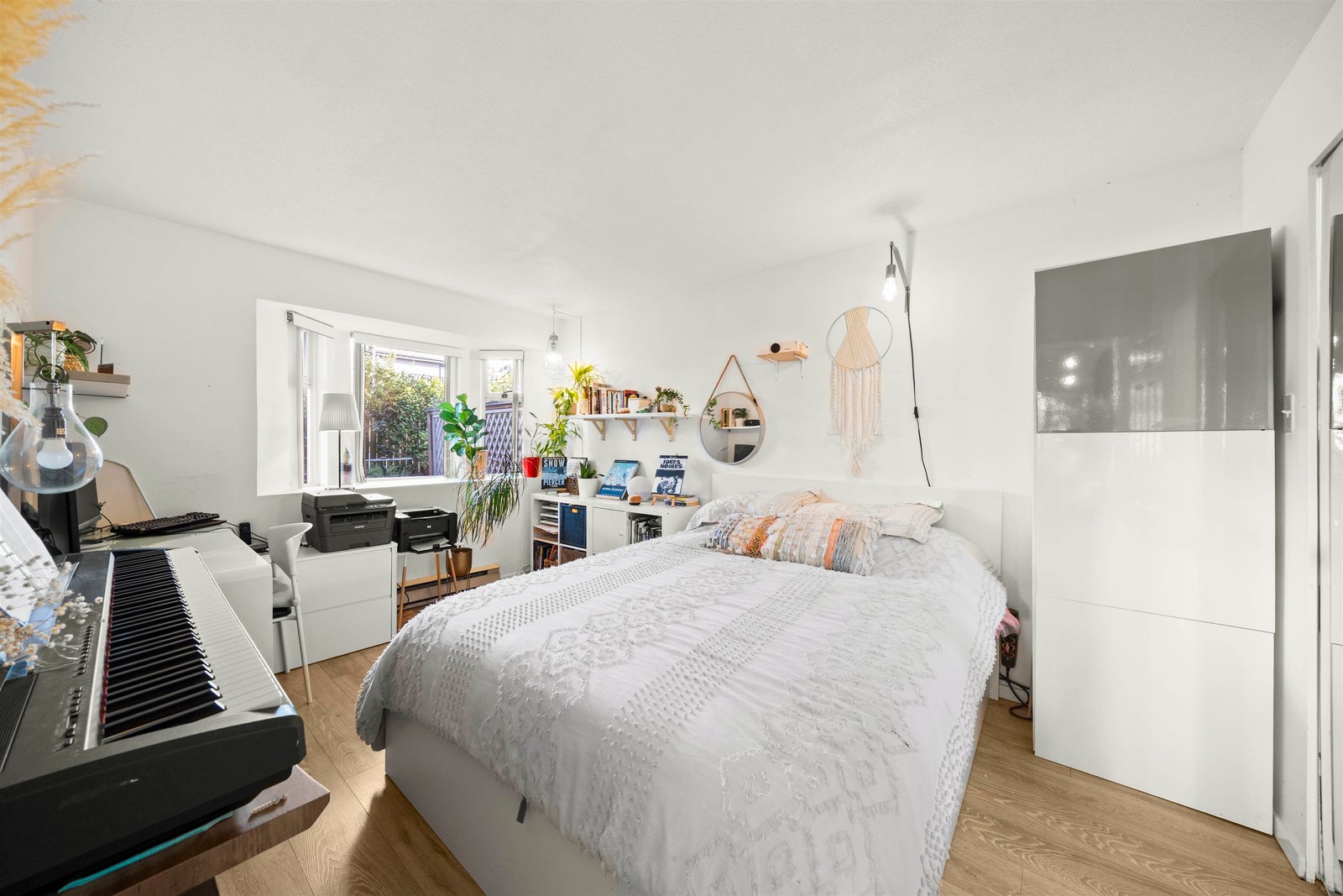 WELCOME to this RENOVATED Vancouver Heights 2 BIG bed 1.5 bath 931sf home w/ PRIVATE 196sf patio!! This beautiful home captures the neighbourhood vibe as one would expect w/ a GREAT layout, SATELLITE bedrooms, BRIGHT & AIRY feel, w/ all the right touches! This stylish home had the kitchen cabinets (2019), quality laminate flooring (2023), & both bathrooms fully renovated (2025) all STYLISHLY UPDATED & ready for you to move in!Another great bonus is ENSUITED primary & dedicated in-suite laundry room w/ extra storage. This PET FRIENDLY walk up building (no elevator) is well maintained with a PROACTIVE strata & newer ROOF, steps to the village shops & the elementary school. You won’t want to miss out on this TURN KEY RENOVATED home in a FANTASTIC location with a great community! 1prk 1lck